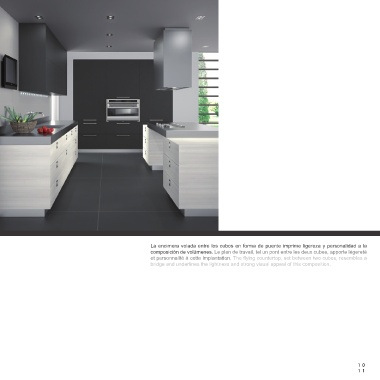 composición de volúmenes. Le plan de travail, tel un pont entre les deux cubes, apporte légereté