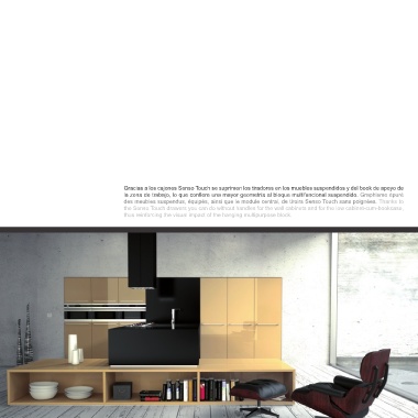 Gracias a los cajones Senso Touch se suprimen los tiradores en los muebles suspendidos y del book de apoyo de
